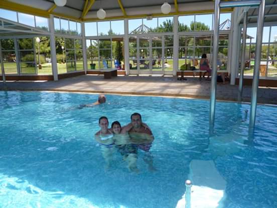 Una piscina semicubierta